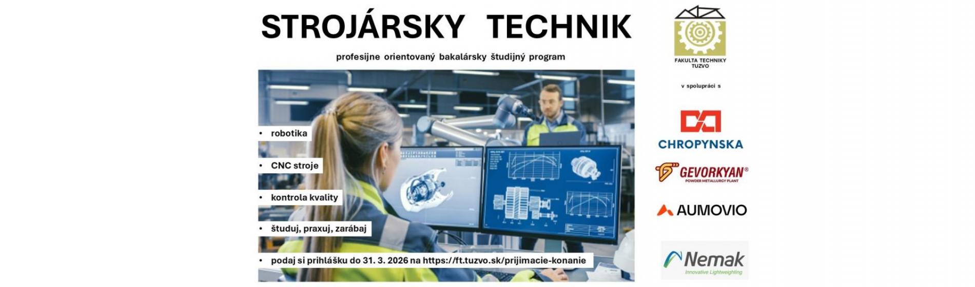 Pozývame záujemcov o štúdium na DOD 2026, ktorý sa uskutoční 20. 1. 2026 od 9.00 hod. v budove Fakulty techniky na Študentskej 26 v miestnosti F123a.